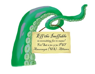 Eff the Ineffable is a casual 10 man raiding guild on Azuremyst. It's a pretty cool guild and has some awesome members. If that sounds like a guild you might like, read the rest of this post!